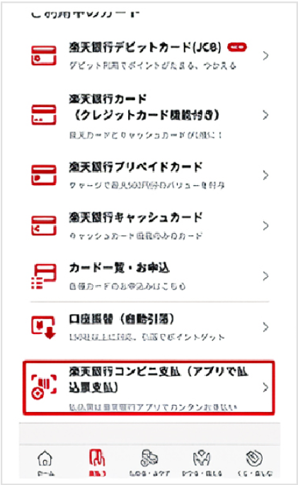 - 2「楽天銀行コンビニ支払(アプリで払込票支払)」を選択